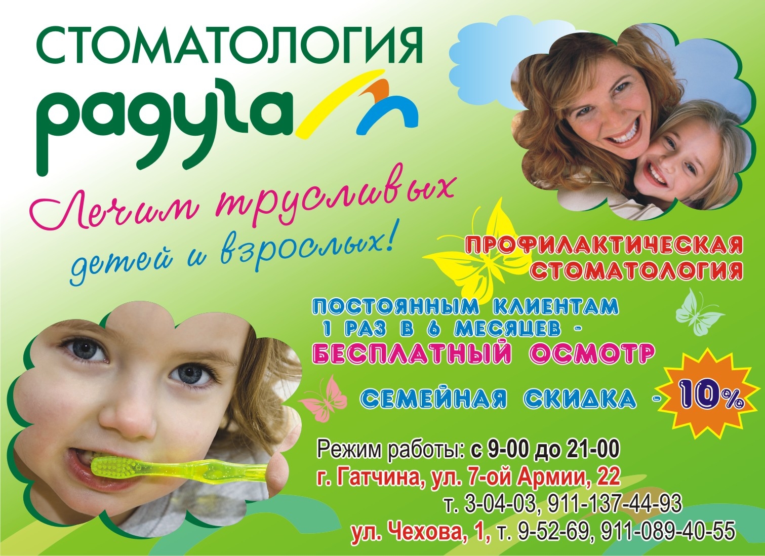 5 декабря 2011 г.Огромная благодарность врачам Радуги. Всей семьей ходим на Чехова. Отдельное спасибо Костровой и Янковской. Очень хорошие, профессиональные и человечные врачи. Дочка лечится у Костровой с 4 лет и нисколько не боится (у других докторов и рта не открывала). Спасибо!
