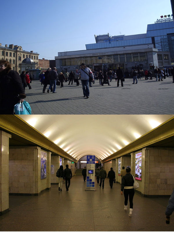 Станция метро «Сенная Площадь» Московско-Петроградской линии находится на территории округа Сенной Адмиралтейского района города Санкт-Петербурга и имеет переходы на две другие линии метро.