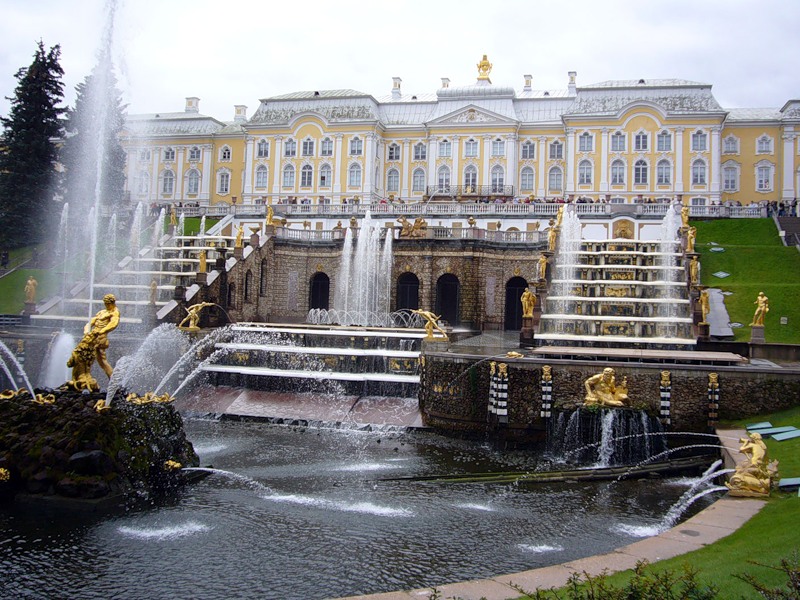 Фонтан Шахматная гора в Санкт-Петербурге занимает центральное место в восточной части Нижнего парка.