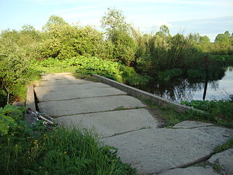Новосергиевский мост в Санкт-Петербурге перекинут для движения автомобильного транспорта и пешеходов через Оккервиль.