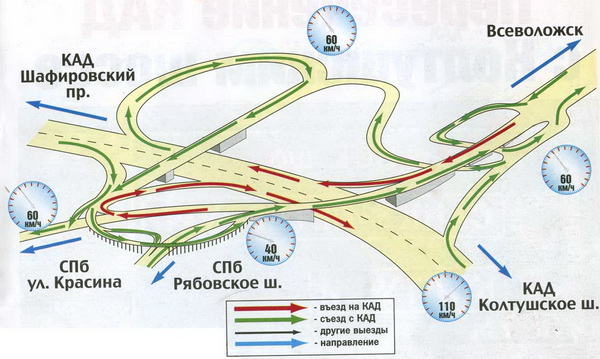 Развязка представляет собой двухуровневую конструкцию, которая создана по простому профилю. Здесь не представляется сложностей для водителей в момент передвижения по участку на автомобиле. С развязки осуществляются удобные выходы, которые ведут на трассу под названием - Кола, что находится на